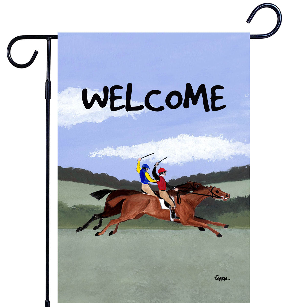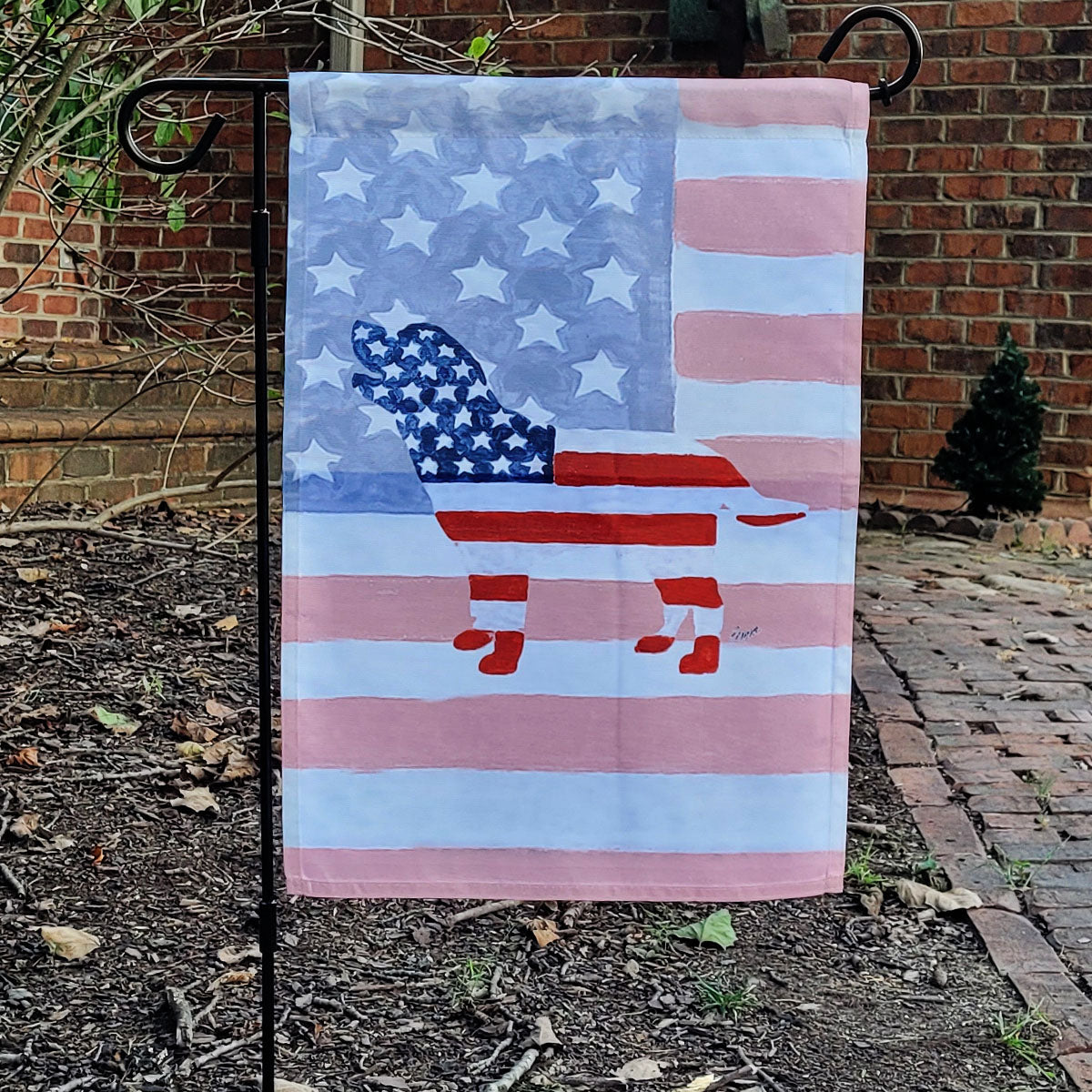 The Garden Flags measure 12.5" W x 18" H ready to hang on any standard garden flag stand. Don't have a stand? No worries. You'll have the option to order one with your flag.