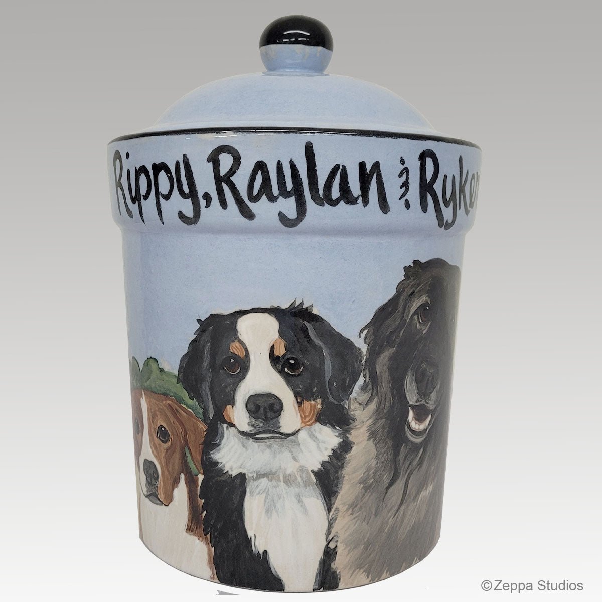 Spoil your pet and yourself rotten with one of our custom hand painted ceramic treat jars. It's a pet portrait you can use!