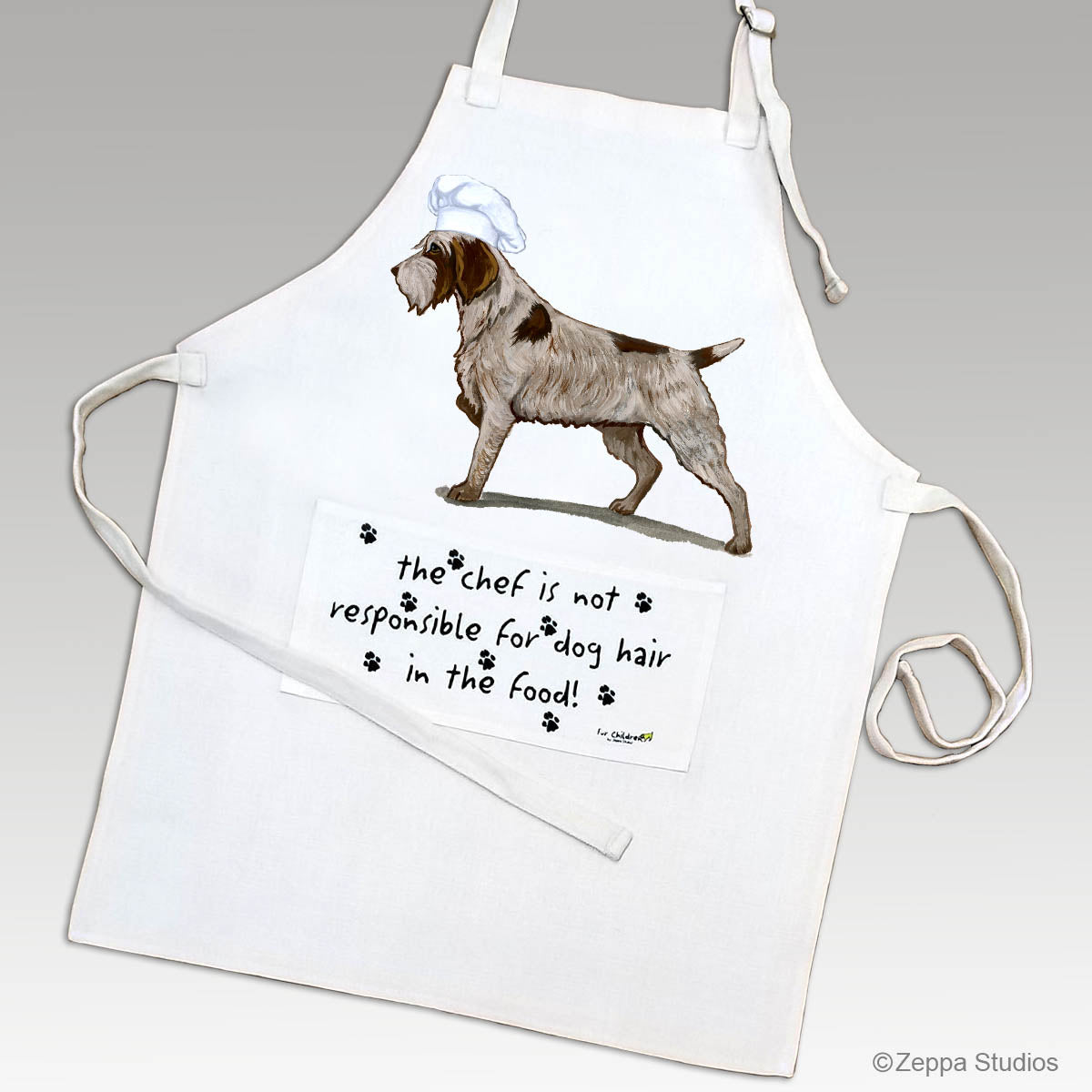 The perfect gift for your Wirehaired Pointing Griffon loving chef (or your favorite groomer), our aprons are made from a poly/cotton ivory linen weave fabric that prints and washes beautifully.