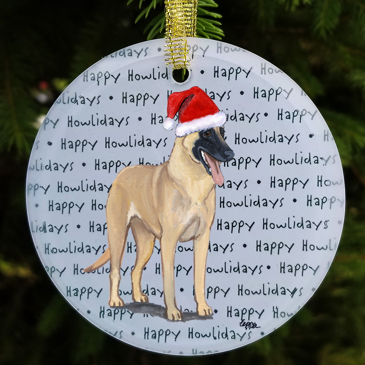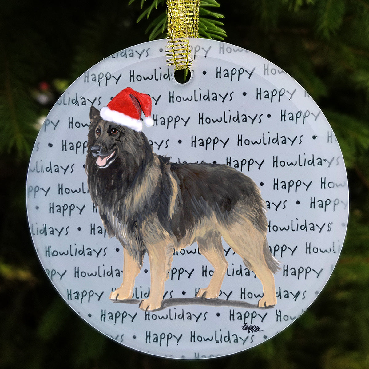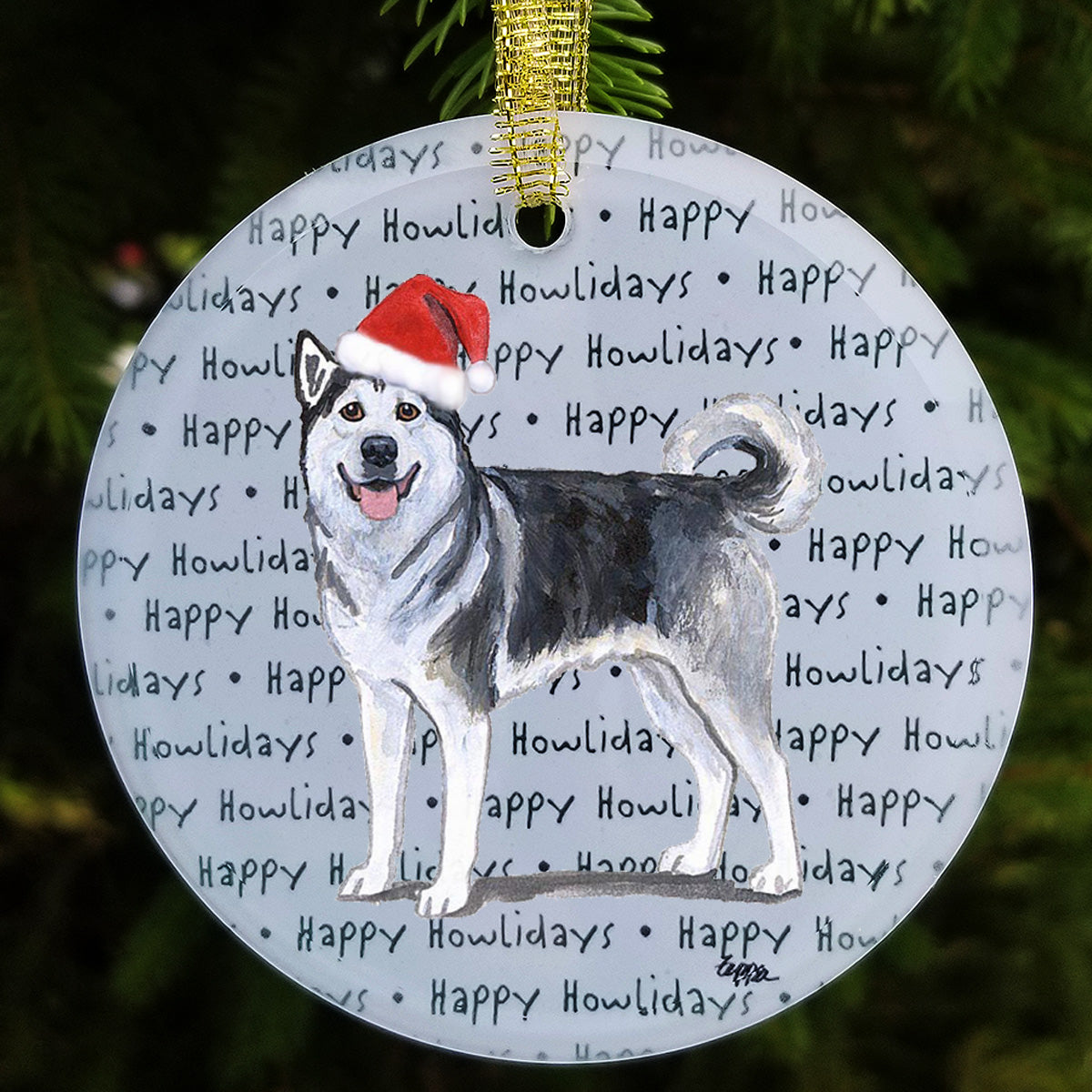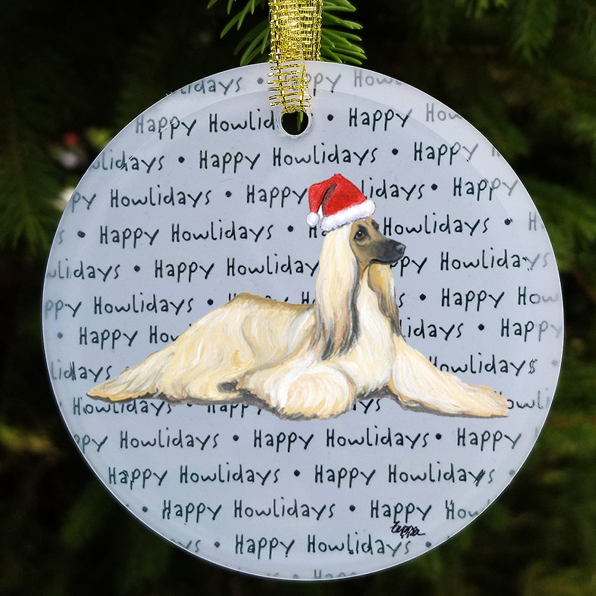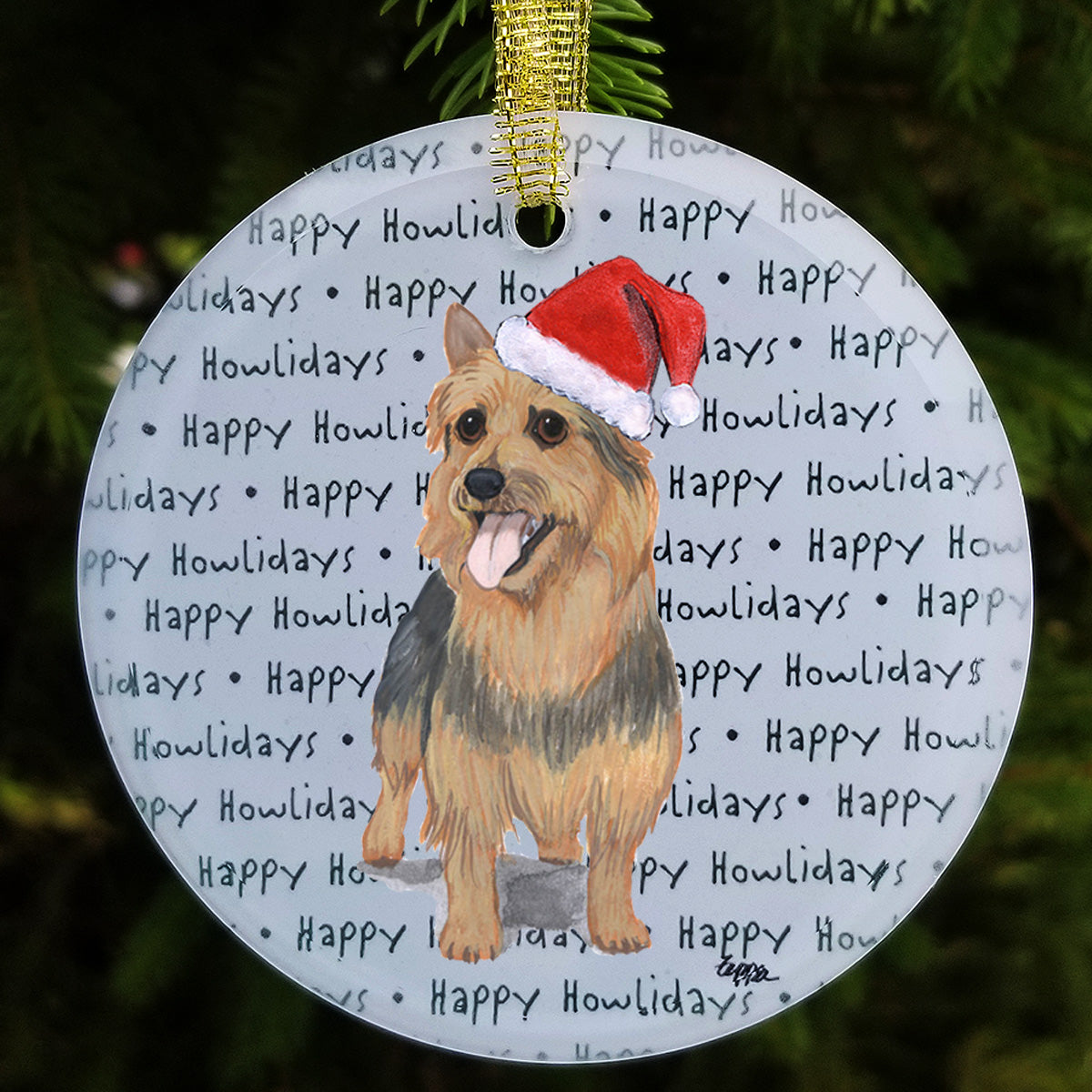 We hand decorate each one of these beautiful glass Christmas ornaments with our original Our Fur Children® breeds sporting Santa Hats using a digital reproduction process known as dye sublimation.