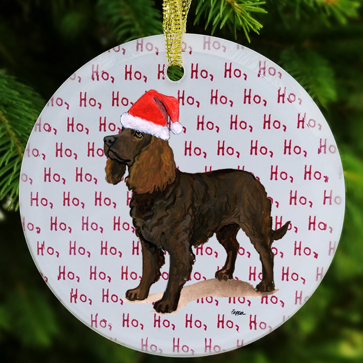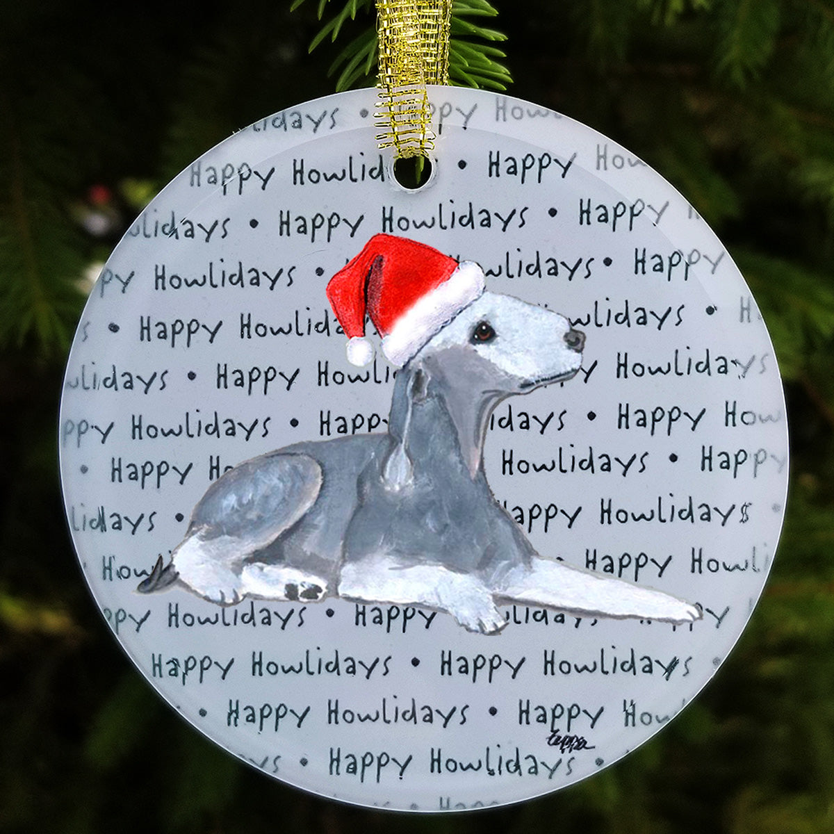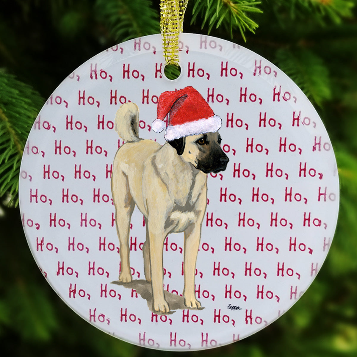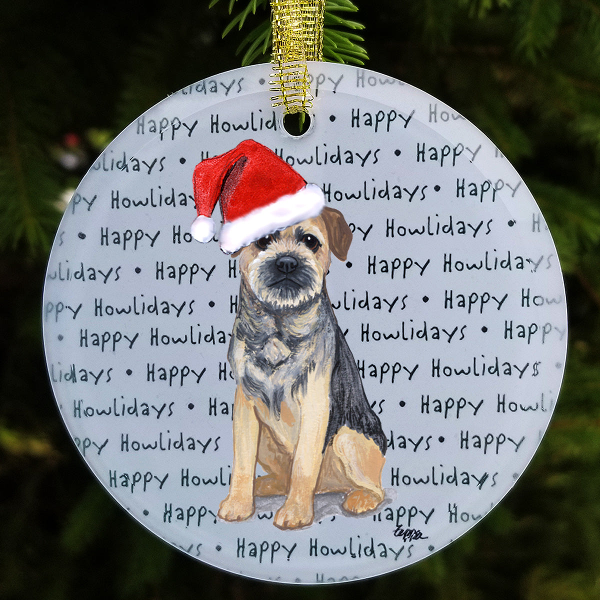 We hand decorate each one of these beautiful glass Christmas ornaments with our original Our Fur Children® breeds sporting Santa Hats using a digital reproduction process known as dye sublimation.