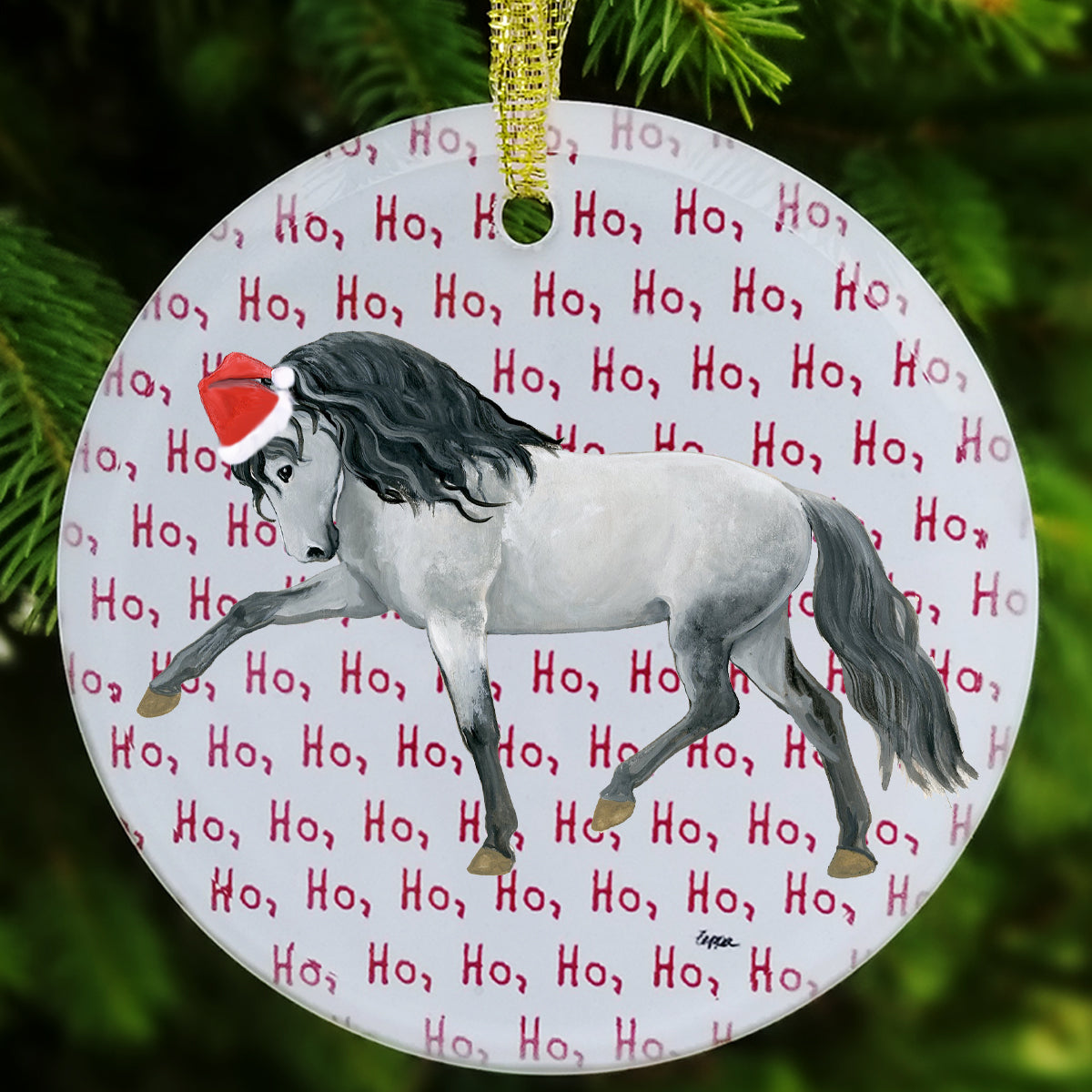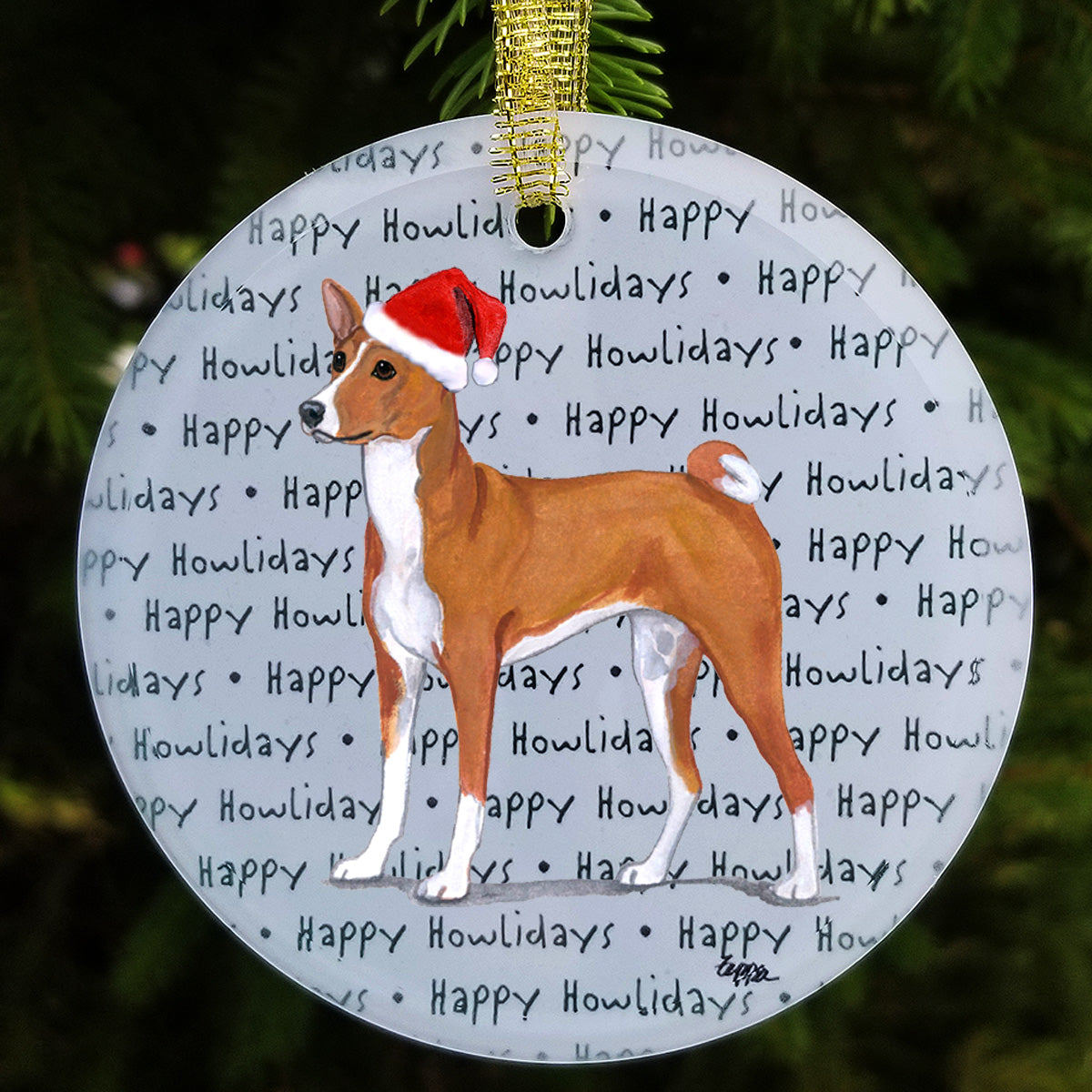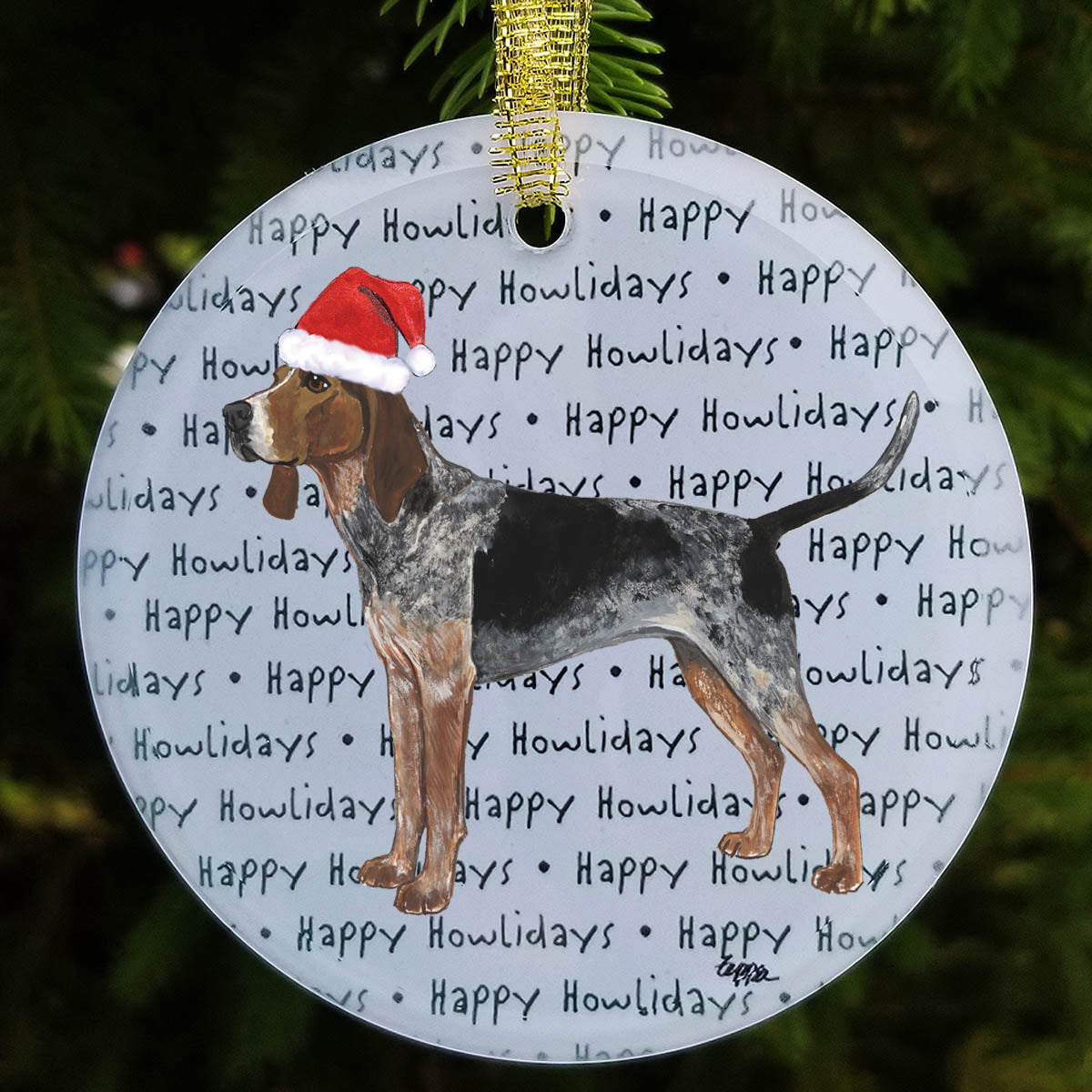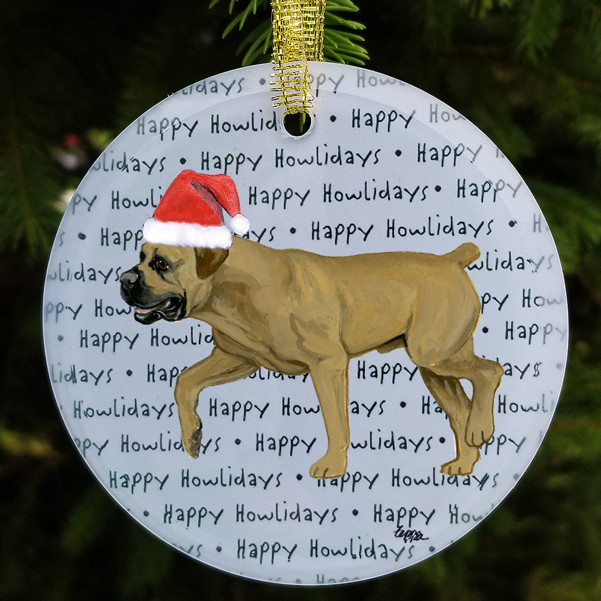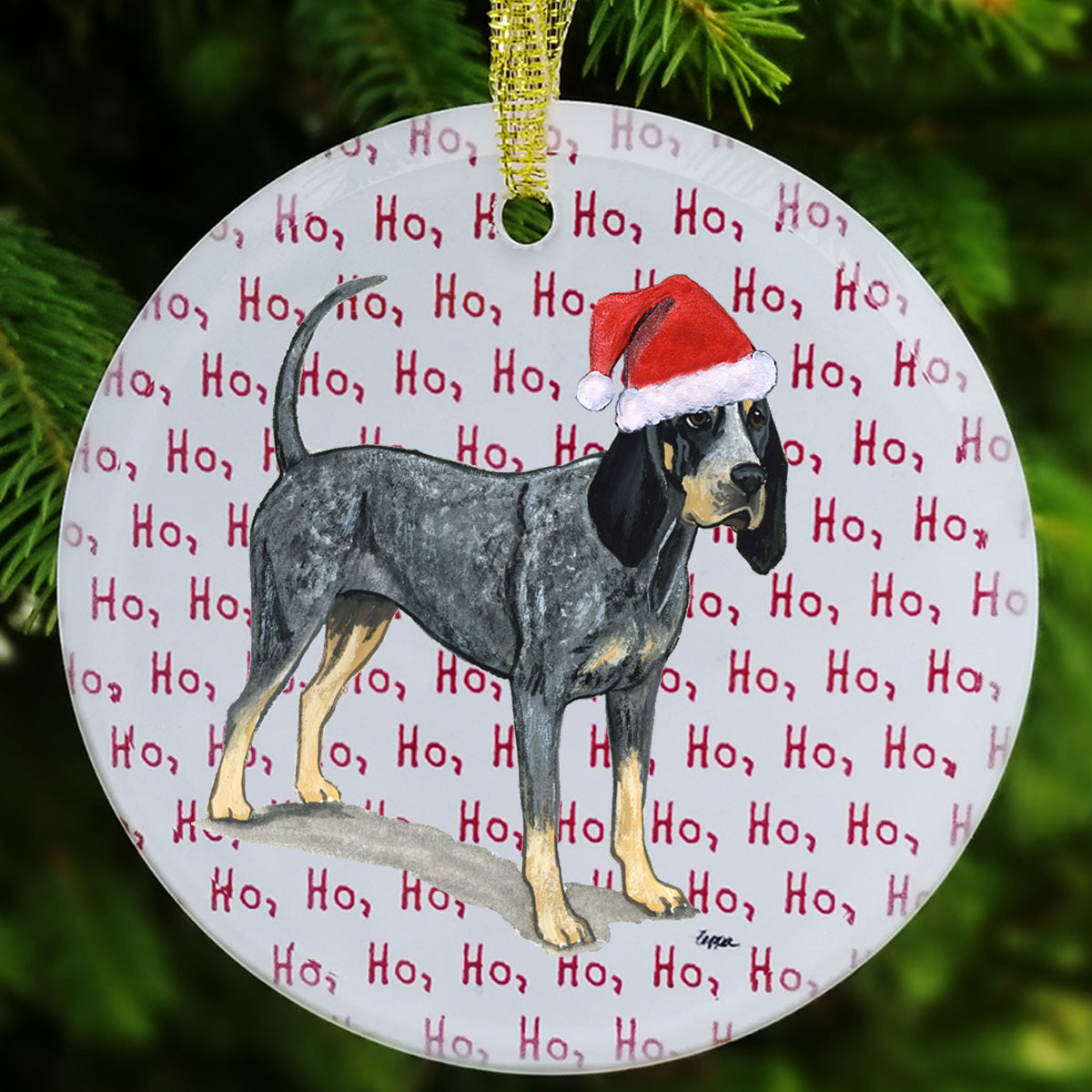 We hand decorate each one of these beautiful glass Christmas ornaments with our original Our Fur Children® breeds sporting Santa Hats using a digital reproduction process known as dye sublimation.
