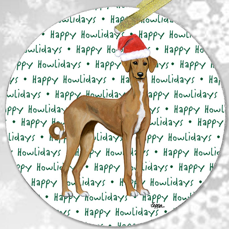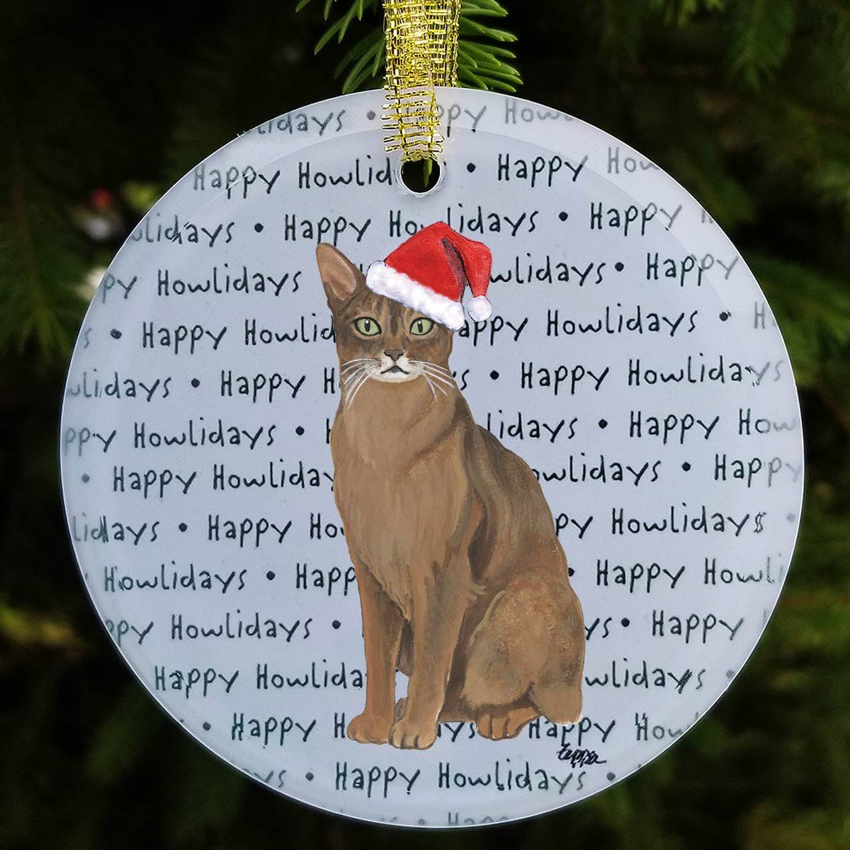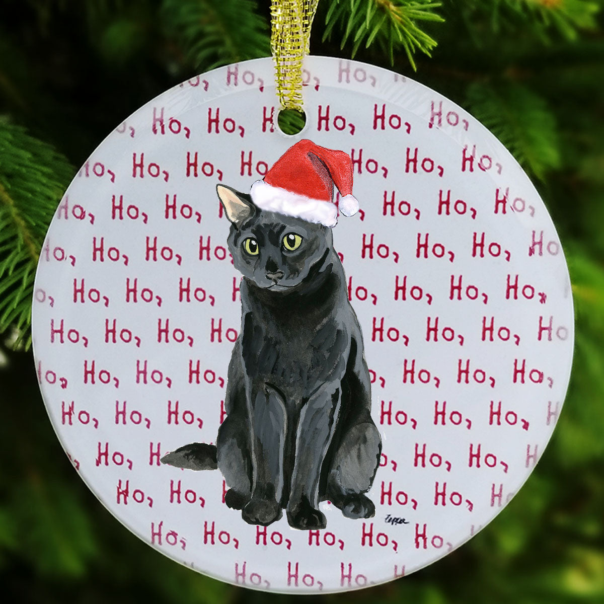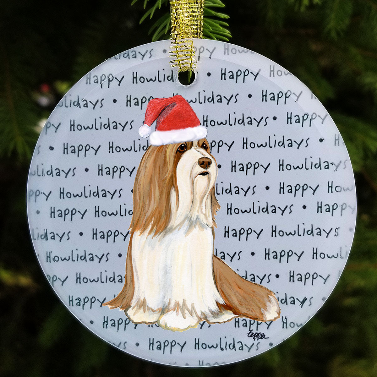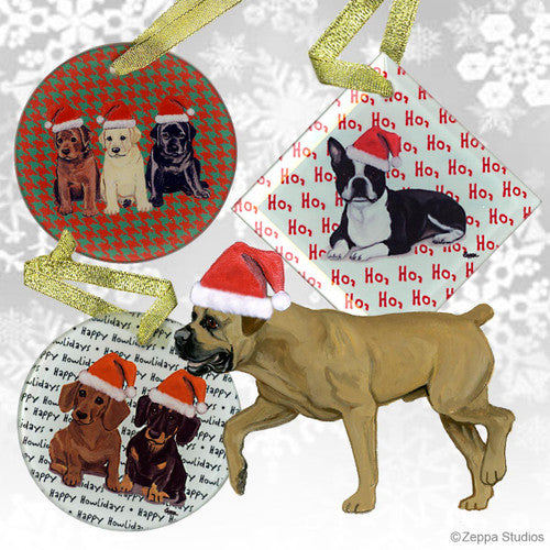 We hand decorate each one of these beautiful glass Christmas ornaments with our original Our Fur Children® breeds sporting Santa Hats using a digital reproduction process known as dye sublimation.