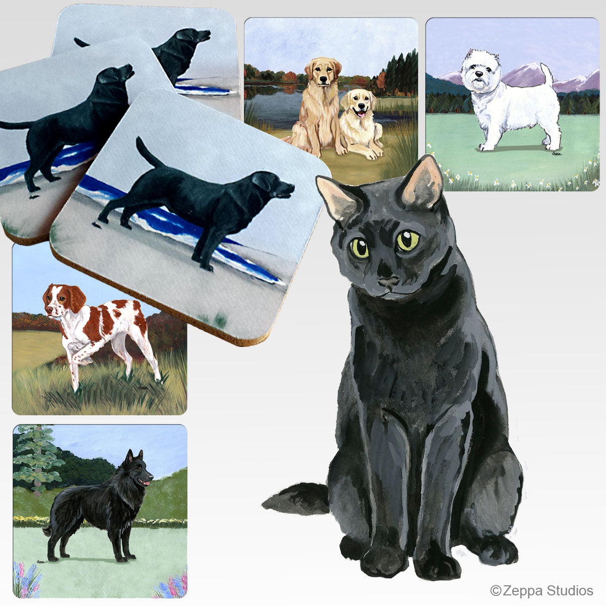 Protect your table surfaces in style. Our poly/rubber absorbent beverage coasters measure 4x4 inches and clean up with soapy water. You can choose to set your favorite critter off with any of 5 scenes...beach, yard, lake, field or mountain.