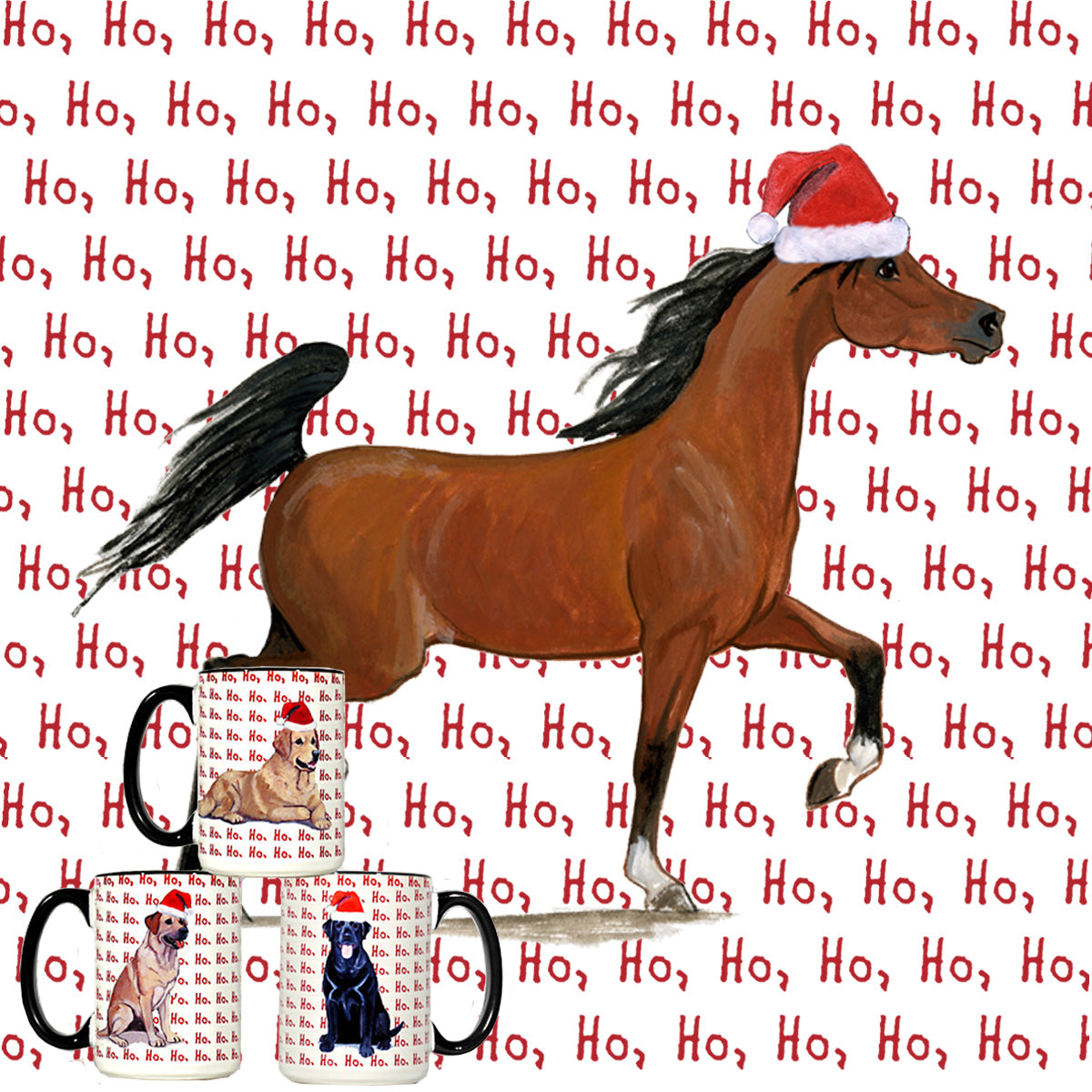 Celebrate the holidays and your favorite pet with our generously sized 15 oz wrap mugs. The "Ho Ho Ho" mug has red lettering and black trim. Combine them with our Christmas coasters for a festive setting.